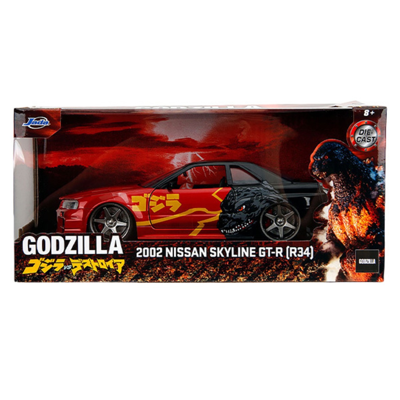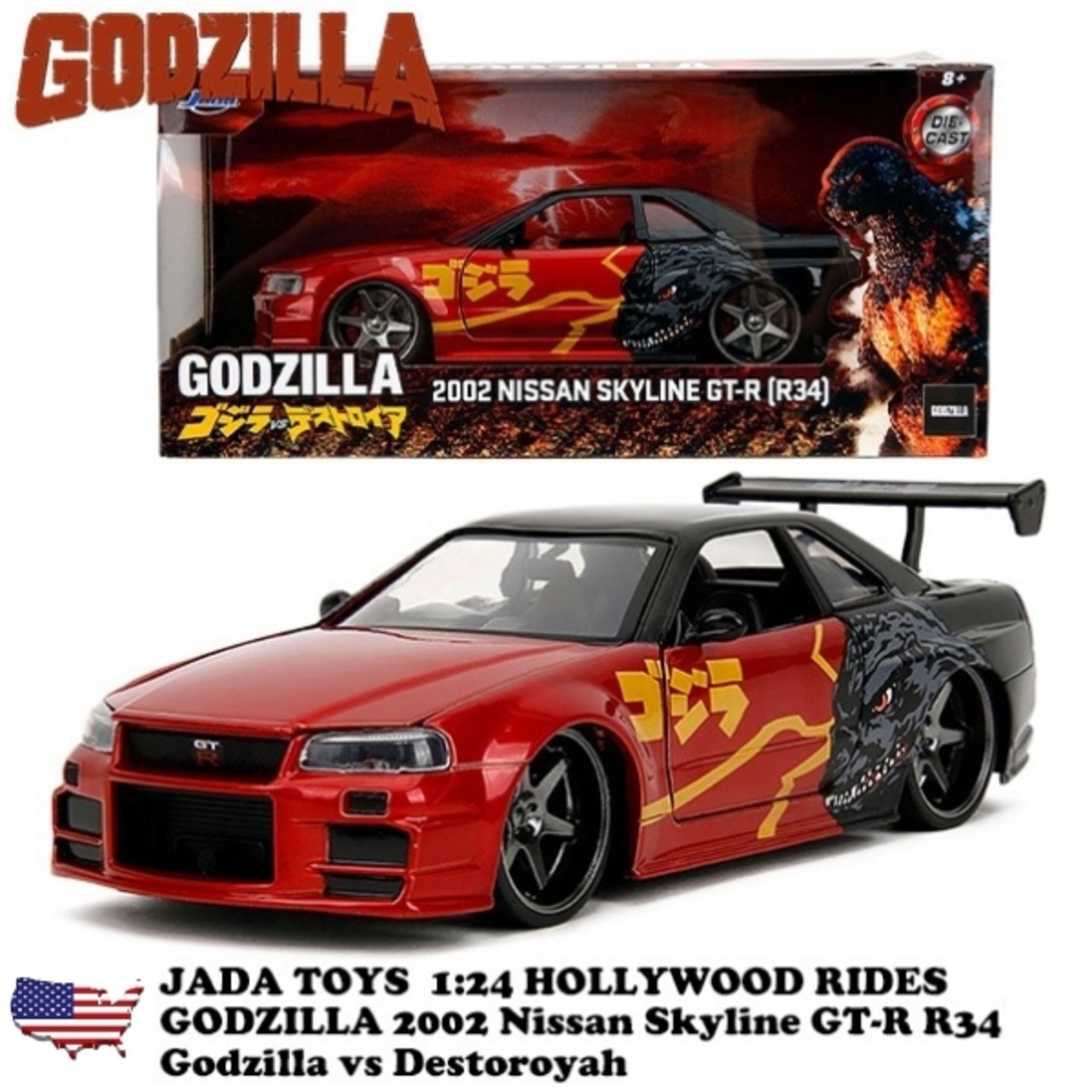 ゴジラ vs デストロイア ミニカー 日産 スカイライナー GTR R34 JADA TOYS 1/24 GODZILLA 2002 Nissan Skyline GT-R R34 Godzilla vs Destoroyah ゴジラ グッズ おもちゃ 怪獣 ダイキャストカー 車 アメトイ 玩具 日本車 子供 プレゼント 誕生日プレゼント ギフト