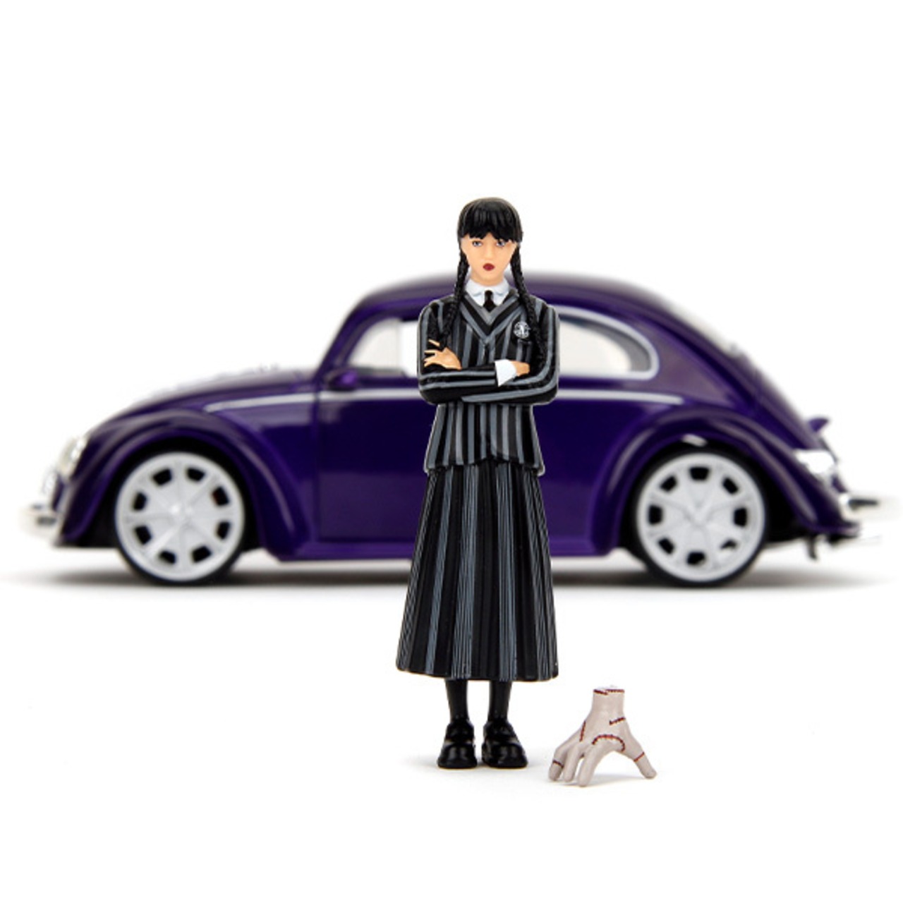 ウェンズデー ミニカー ワーゲン ビートル アダムス・ファミリー フィギュア 付き JADA TOYS 1/24 WEDNESDAY VW Beetle w/WEDNESDAY ADDAMS フォルクスワーゲンビートル Netflix キャラクター アメトイ 車 おもちゃ アメリカン雑貨