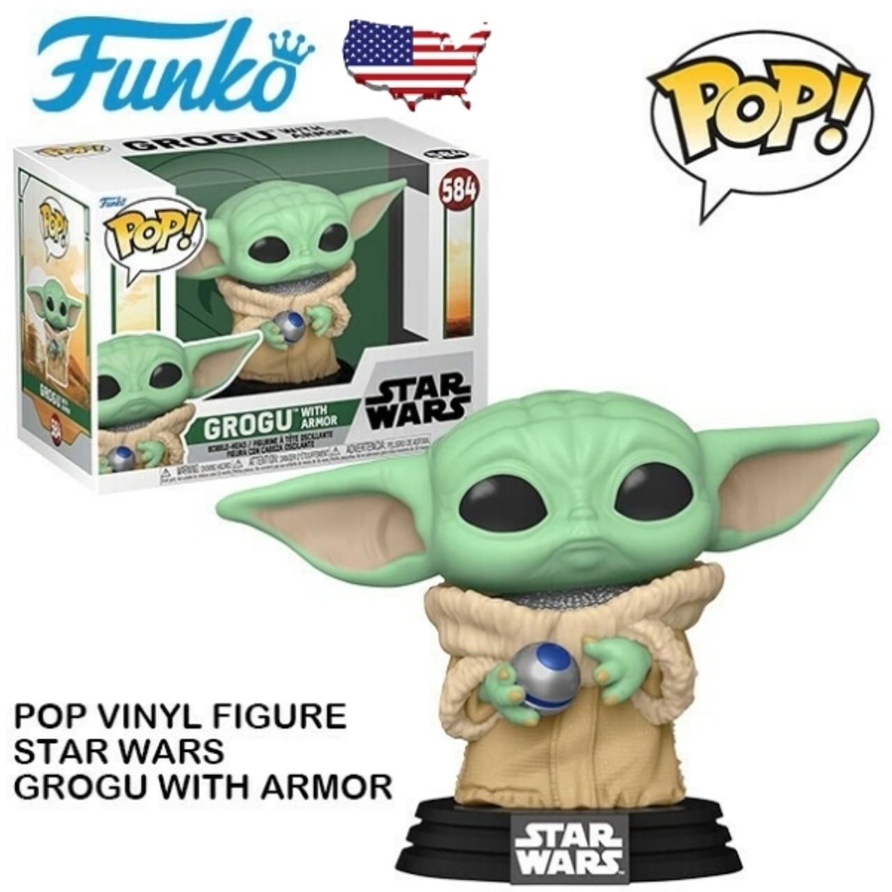 スターウォーズ フィギュア ベビーヨーダ ファンコポップ FUNKO POP! VINYL FIGURE STAR WARS GROGU WITH ARMOR キャラクター アメトイ おもちゃ 映画 グッズ ディン・グローグー ザ・チャイルド 首振り人形 アメリカン雑貨 アメリカ雑貨