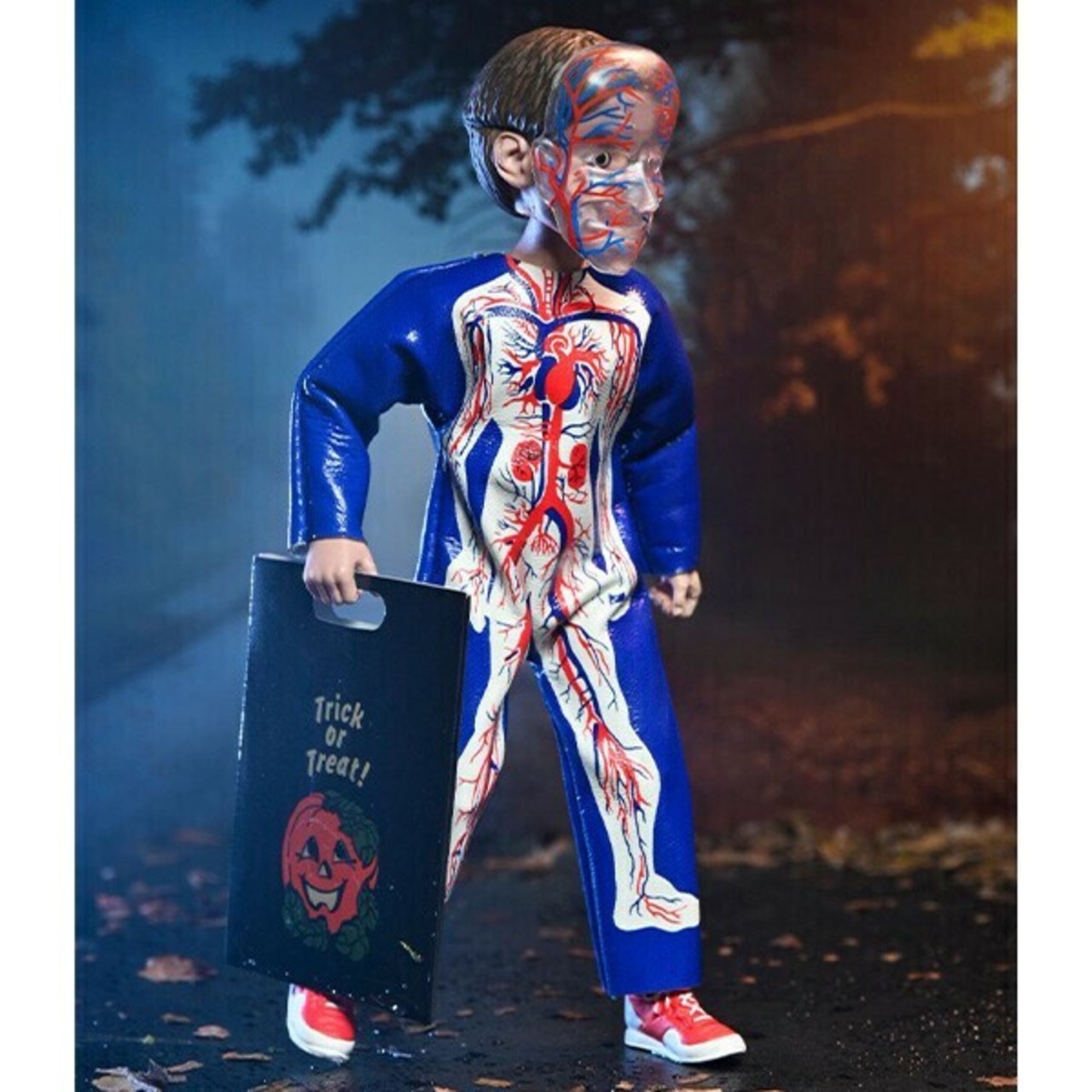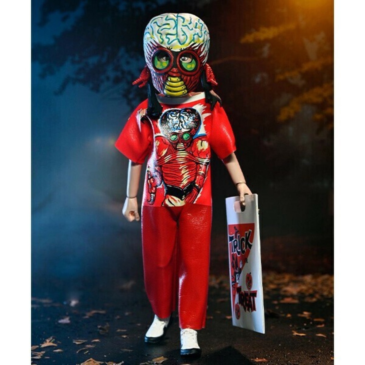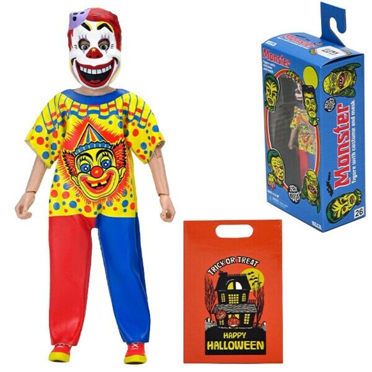 ベン・クーパーのオリジナルデザインを模したマスクと、クラシックコスチュームのビニール調の外観を再現したソフトグッズを身に着けた各フィギュアには、トリック・オア・トリートのバッグまたはパンプキンバケツのアクセサリーが付属しますよ。