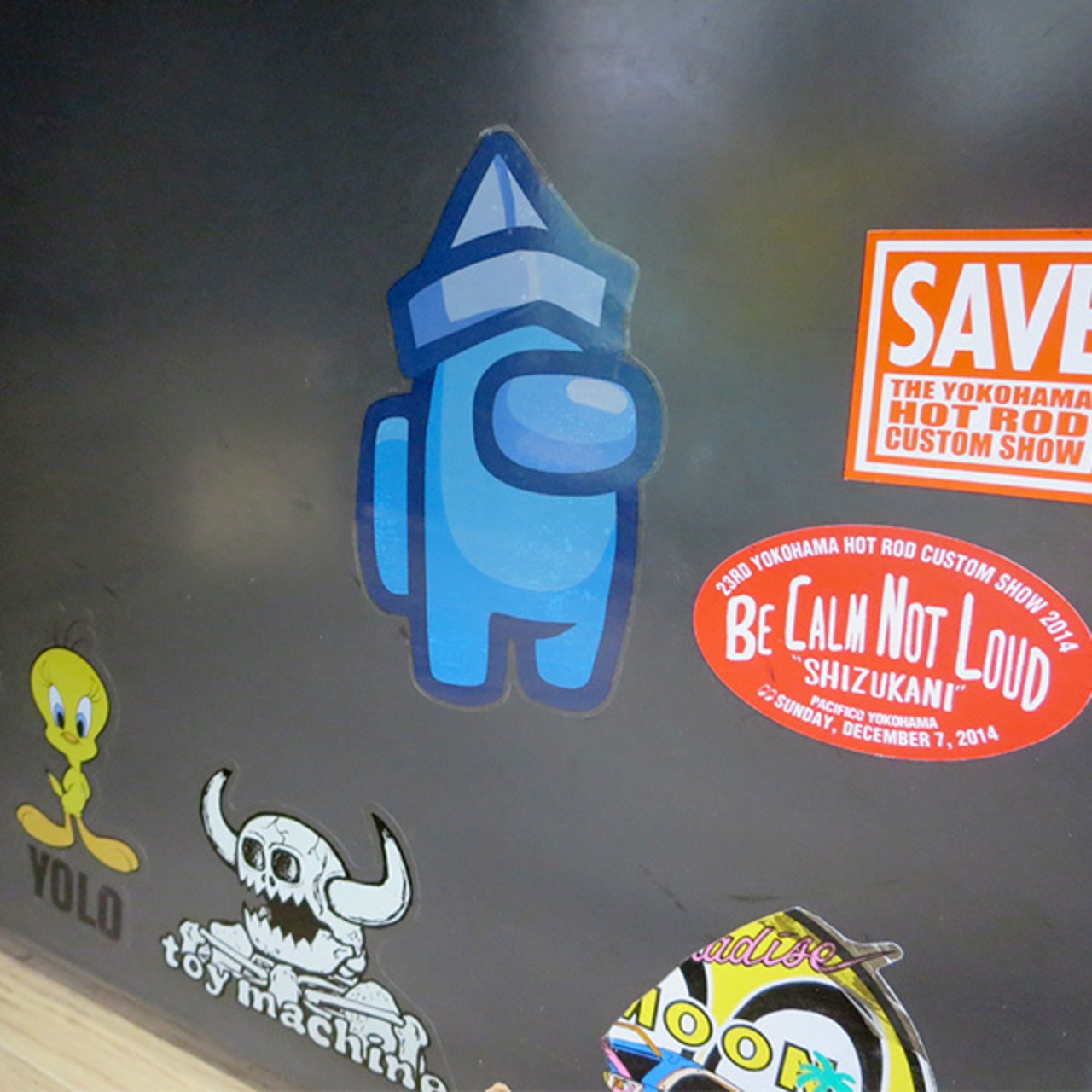 ゲームの世界からそのまま出てきたようなインポスターのステッカーですよ。