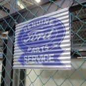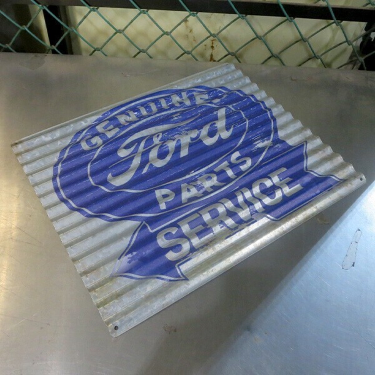 とたん板のようなナミナミの形状と材質の、コルゲート メタルサイン FORD GENUINE PARTS!!