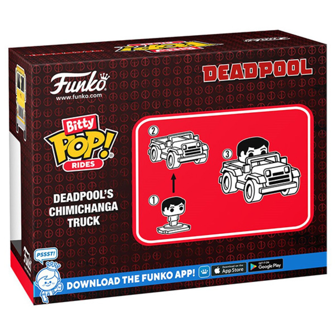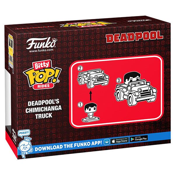 POP! 特有のデフォルメされたデザインでミニサイズに縮小されたとっても Cute なデッドプールとチミチャンガ トラック!
