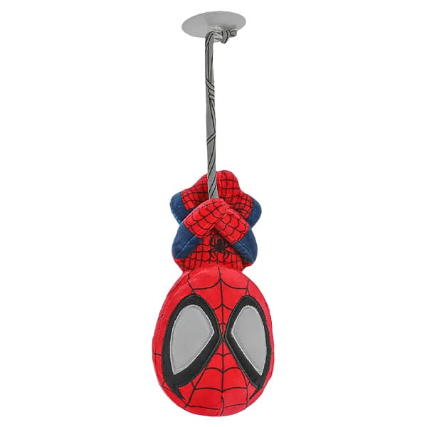 ウェブロープに吸盤が付いており、スパイダーマンの象徴的な逆さまにぶら下がるポーズをとっています。
