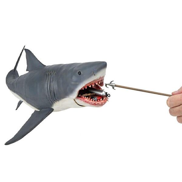 最先端の精巧な造形と塗装技術を駆使した、全長15インチ(約36cm)のジョーズと、