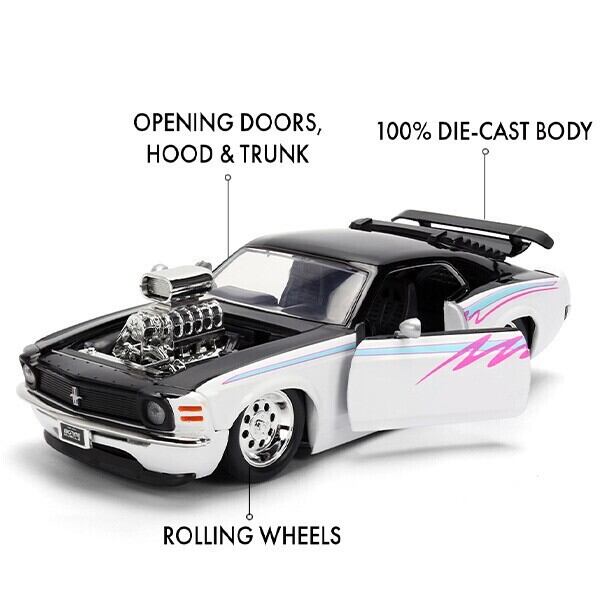アメリカの人気ミニカーメーカーJADA TOYS(ジャダトイズ)より、 迫力あるスタイルで人気の1970 Ford Mustang Boss フォード マスタングが 1/24スケール ダイキャストミニカーで登場!