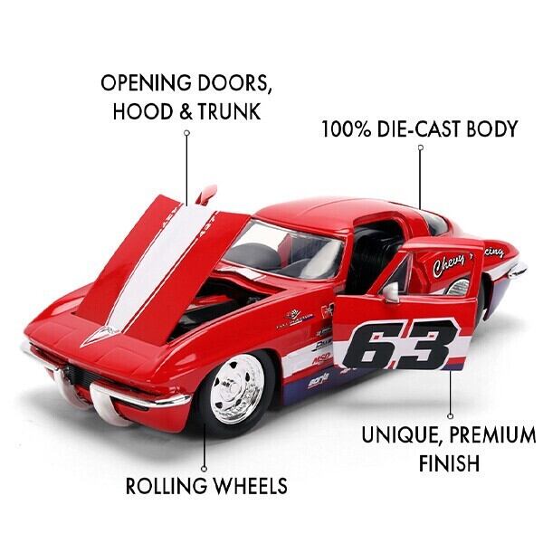 シボレー コルベット 1963 ミニカー 1/24 アメ車 旧車 ダイキャストカー JADATOYS 1:24 1963 Chevy Corvette マッスルカー 車 おもちゃ コレクション 海外輸入品 アメトイ アメリカン雑貨 アメリカ雑貨 ライセンス品 1960 60年代