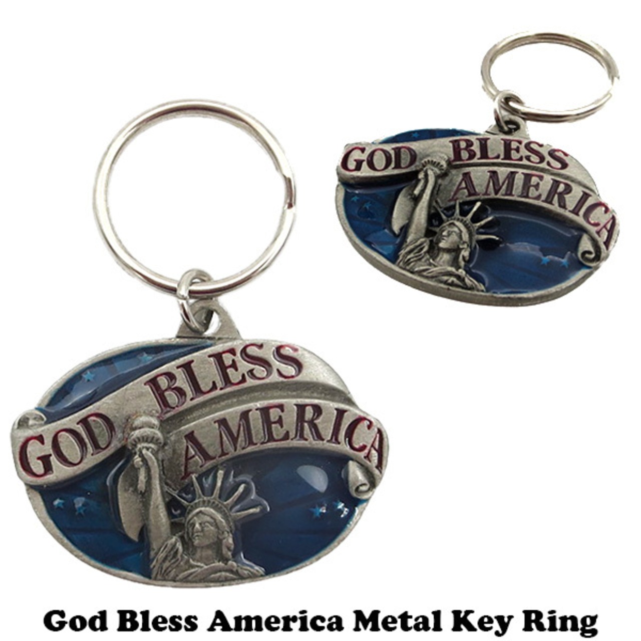 メタル製で凹凸仕様のGOD BLESS AMERICA キーリングです。