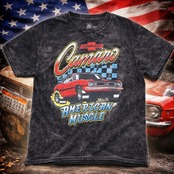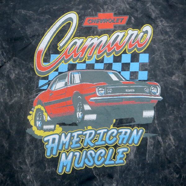 伝説のマッスルカー「カマロ」を大胆にプリントした、存在感抜群のアメリカンデザインです。