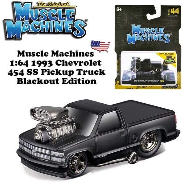 マイスト マッスルマシン ミニカー 1/64 シボレー ピックアップトラック Muscle Machines 1993 Chevrolet 454 SS Pickup Blackout アメ車 日本車 旧車 ダイキャストカー 車 おもちゃ コレクション アメトイ コレクション アメリカンブランド 海外輸入品 アメリカン雑貨