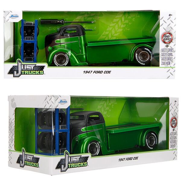 フォード トラック 運搬車 ミニカー 1/24 タイヤ交換 JADATOYS 1:24 JUST TRUCKS w/RACK & WHEELS 1947 Ford COE Flatbed グリーン アメ車 ダイキャストカー 旧車 車 おもちゃ コレクション アメトイ 海外輸入品 アメリカン雑貨 アメリカ雑貨 ライセンス品
