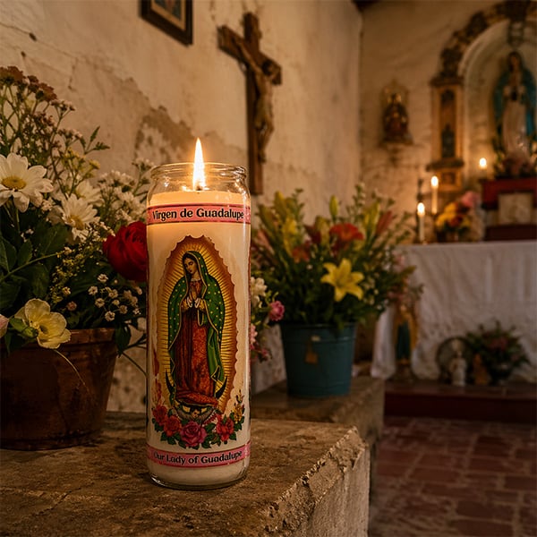 中南米の教会や家庭で実際に使われているスタイルを再現した、8インチサイズのデボーショナルキャンドルです。