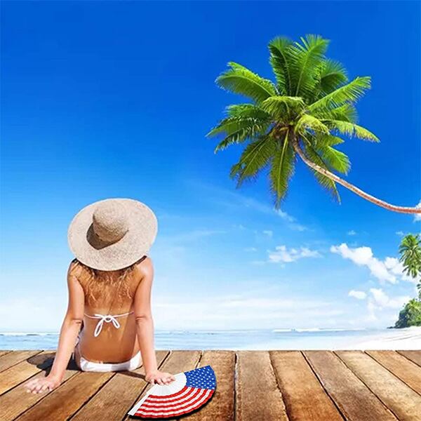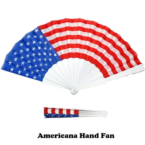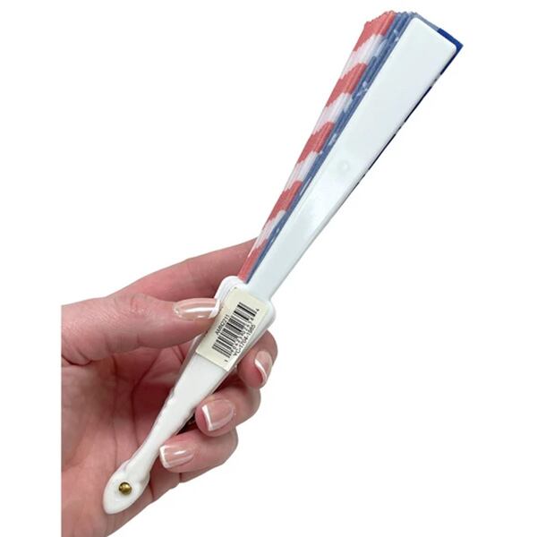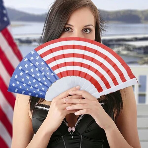 赤・白・青のド派手カラーに、星条旗モチーフのインパクト抜群デザイン。暑い日にパタパタするだけで、なぜか気分はフリーダム♪
